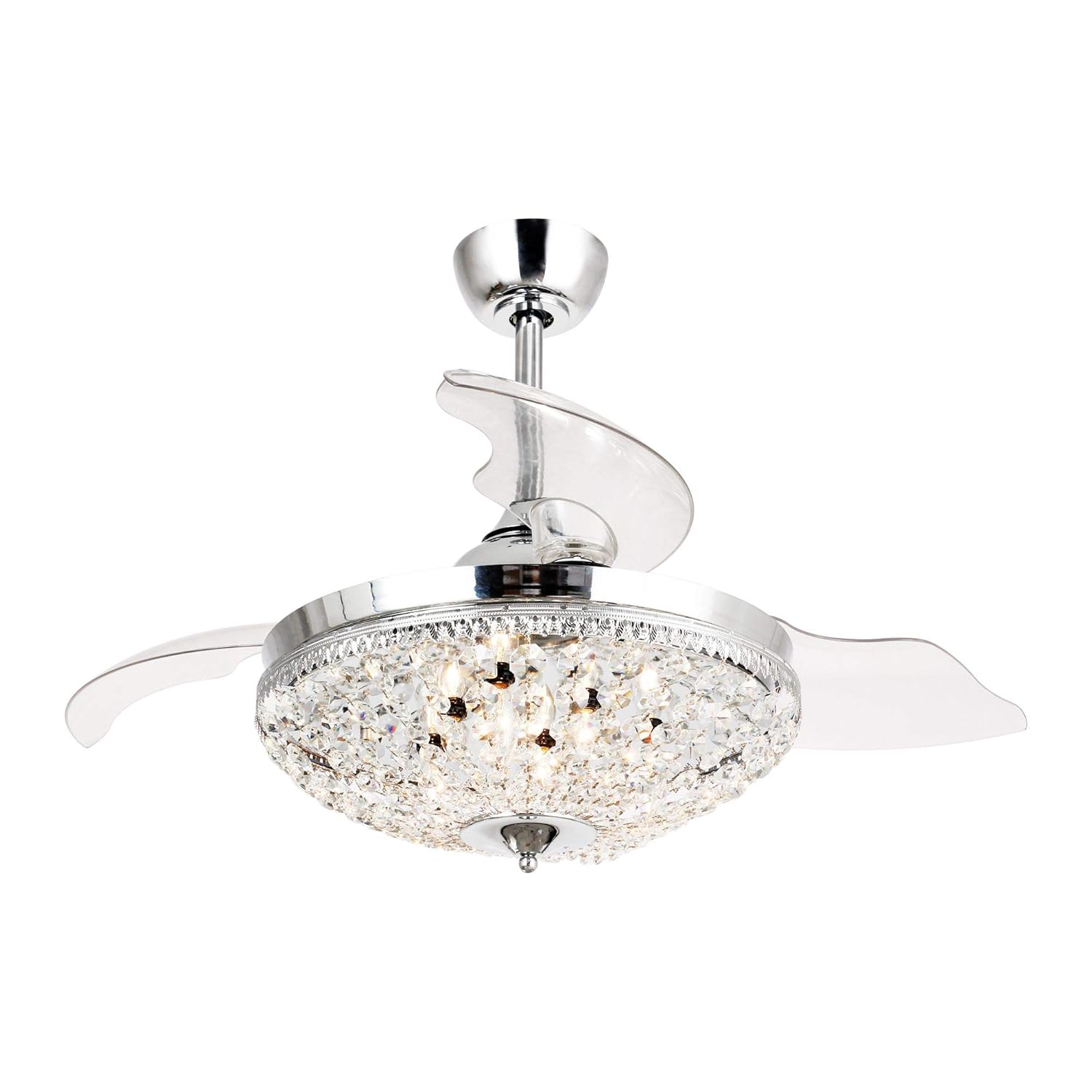 Fandian 42 inch ceiling fans 4 retractable blades led ceiling fan three color change crystal chandelier with remote control (white).